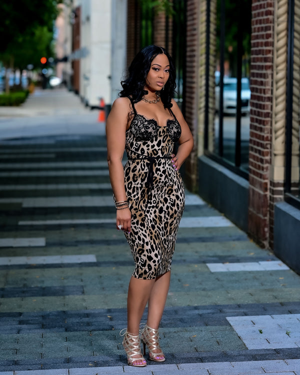 Animal print multi spaghetti strap convertible straps to tie however you want Sculptured top with lace detail Built in support in top (may still need additional support for some) MIDI length true to size bodycon fit stretchy Fabric: polyester/spandex Made...