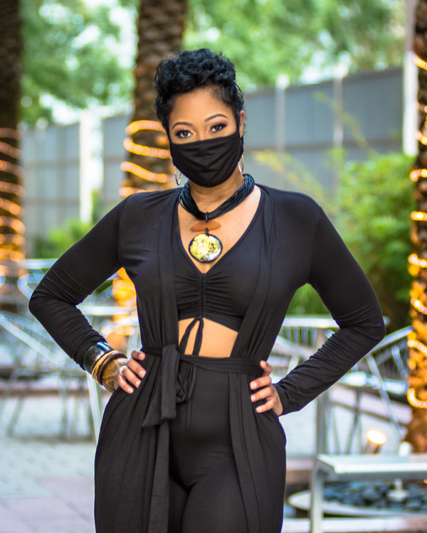 4 pc pants set includes: top, pants, duster, and mask. Color: Black, Navy V-neck crop top Adjustable strings allow you to adjust length of top Very soft and comfortable rayon/cotton/spandex blend High waisted pants Wide legged Elastic waistline Perfect for...